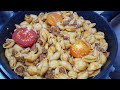 Ingredients: 250 grams of pasta (boil in salted water) 250 grams of minced meat (I made from ground beef) 1 onion 50 grams of butter 1 tbsp. tomato paste 150 - 200 ml. water or broth Salt to taste A mixture of ground peppers to taste 1 tsp oregano 1 tsp sugar 0.5 tsp basil